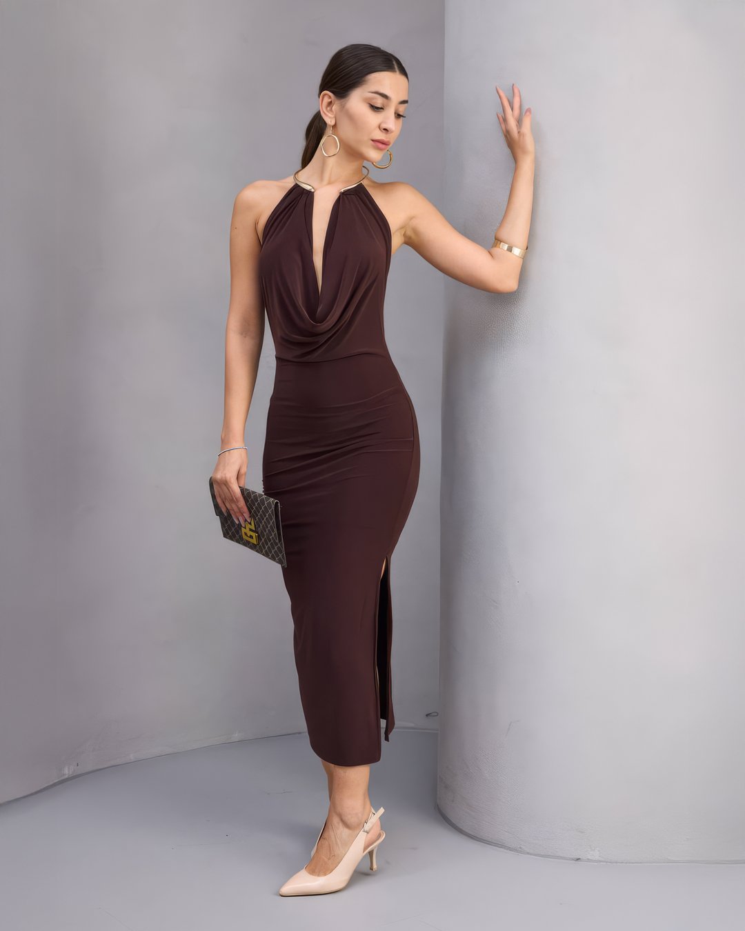 Midi boy kesimiyle modern ve şık bir görünüm sunan bu elbise, slim kalıbı sayesinde vücut hatlarınıza mükemmel uyum sağlar. Yetişkin yaş grubuna hitap eden zarif tasarımıyla her ortamda dikkat çeker. Yırtmaç detayı feminen bir siluet oluşturur ve hareket özgürlüğü sağlar. Yumuşak dokusuyla öne çıkan Sandy kumaş materyali, gün boyu konfor hissi verir.
