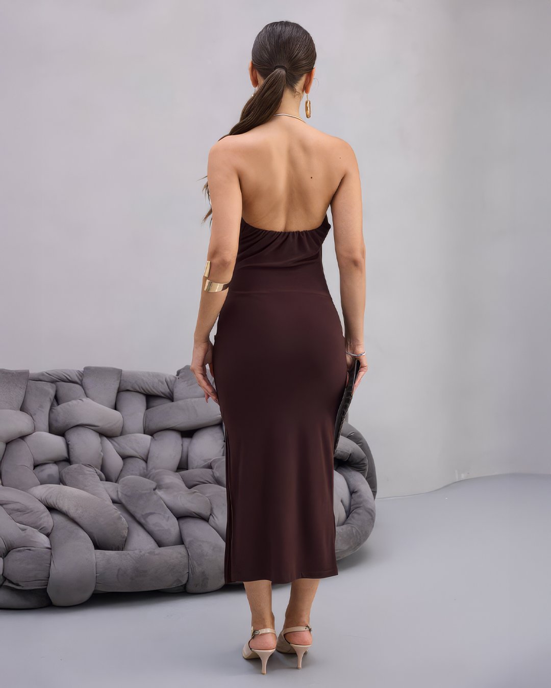 Crasia Boyundan Ay Aksesuar Kahverengi Sandy Elbise