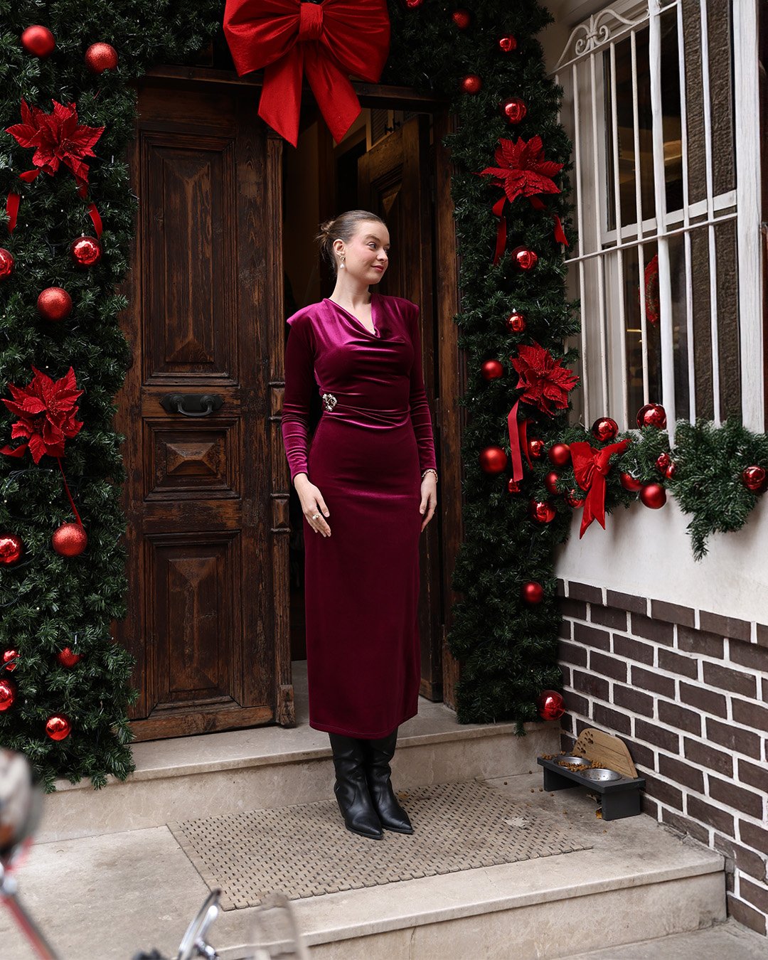 Zarif görünümü ve şık duruşuyla dikkat çeken bu kadife elbise, özel günlerinizde ve davetlerinizde sofistike bir stil sunar. Vücudu saran modern kesimi, bel detayları ve akıcı dokusuyla hem konfor hem de şıklığı bir arada yaşatır. Yumuşak kadife kumaşı sayesinde kış ve mevsim geçişlerinde ideal kullanım sunar. Topuklu bot ve ayakkabılarla kolayca kombinlenerek kusursuz bir görünüm elde etmenizi sağlar.