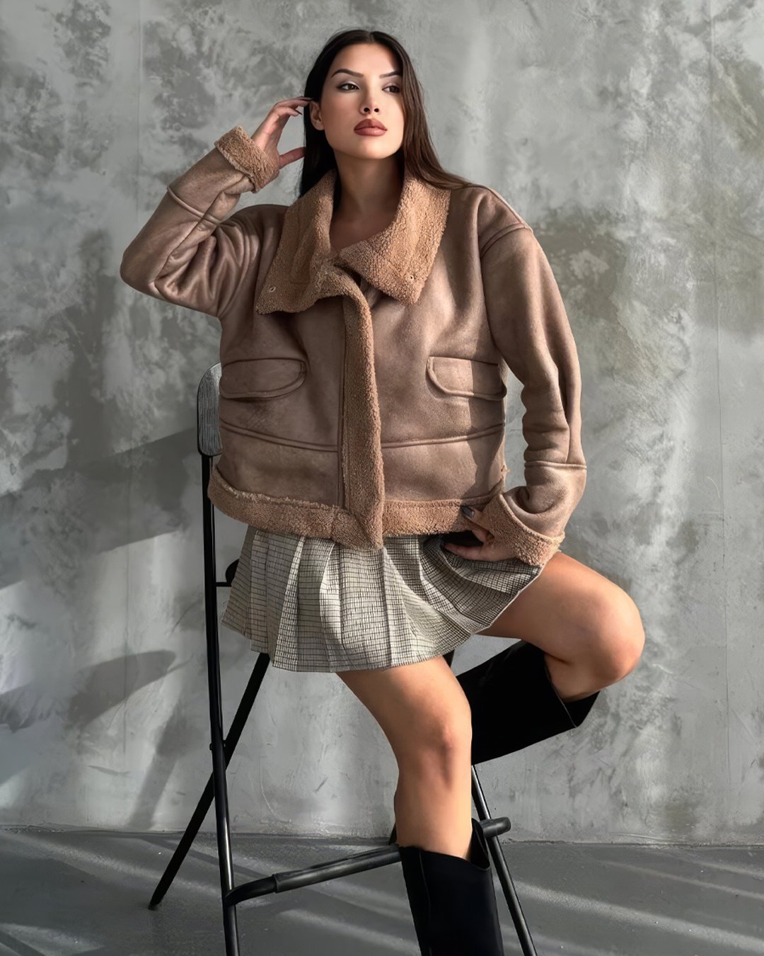 Basic koleksiyonuna ait vizon/kahverengi nubuk yaka mont, sade ve şık tasarımıyla her ortama uyum sağlar. Süet dokusu sayesinde yumuşak bir dokunuş sunar ve kalın yapısıyla soğuk havalarda sıcak tutar. Ceket yaka detayı klasik ve zamansız bir görünüm kazandırırken, suni kürk detayları montu dikkat çekici bir stil haline getirir. Çıtçıt ve fermuar kapama şekli pratik kullanım imkanı sağlarken, mini boy kesimi modern ve dinamik bir siluet oluşturur. Uzun kolları ekstra koruma sunar ve çift cepli tasarımı hem fonksiyonel saklama alanları hem de estetik detay sağlar. Günlük kullanım için ideal olan bu mont, rahatlığı ve şıklığı bir arada sunar ve tüm yaş gruplarına hitap eder.