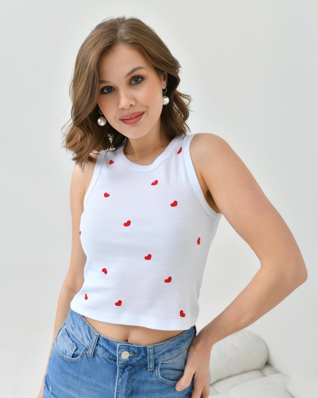 Crasia Kalp Nakışlı Beyaz Crop