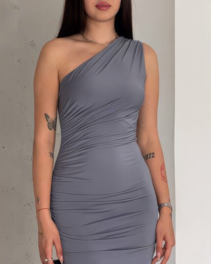 Crasia Omuz Detay Drapeli Gri Elbise