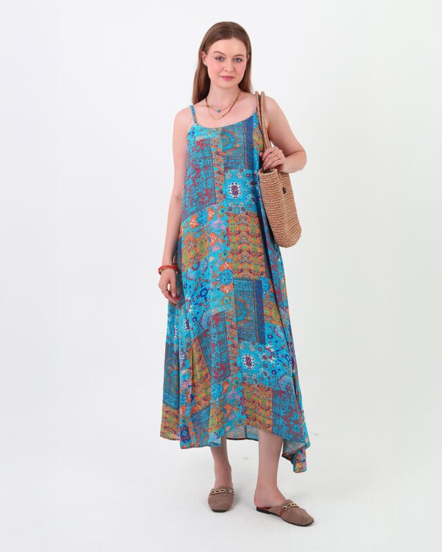 Crasia Ayarlanabilir Askılı Salaş Rahat Desenli Elbise