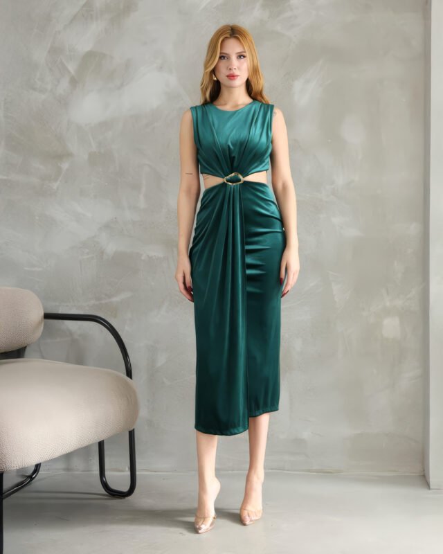 Crasia Kadın Drapeli Yeşil Uzun Elbise